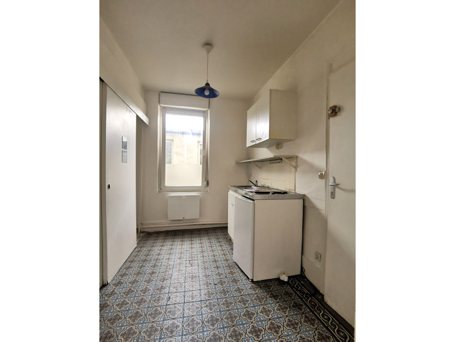 AMIENS, QUARTIER ST ANNE, à 10mins à pied de la Gare du Nord et du centre-villeA louer, STUDIO de 21m² au RDC comprenant une entrée avec coin kitchenette équipée (plaque et réfrigérateur), une pièce principale, une salle de douche et des WC séparés.