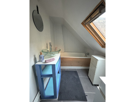 Au 1er étage : palier, une salle de bains, une chambre avec douche