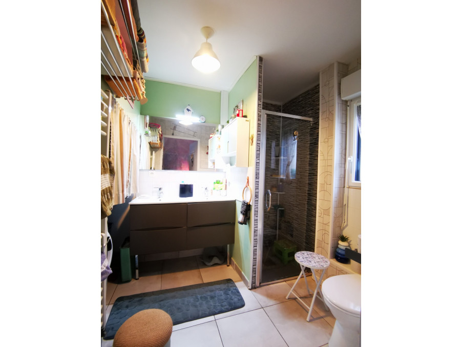 Au rez de chaussée : une entree, un sejour avec cuisine amenagée et equipée ouverte, une salle de douche avec wc