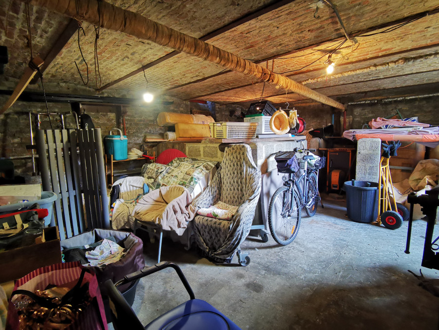 Une grande cave voutée en briques avec espace chaufferie et laverie