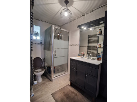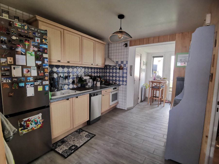 Au rez-de-chaussée : un séjour, une cuisine aménagée et équipée, une arrière-cuisine, une salle de douches avec WC, un cellier