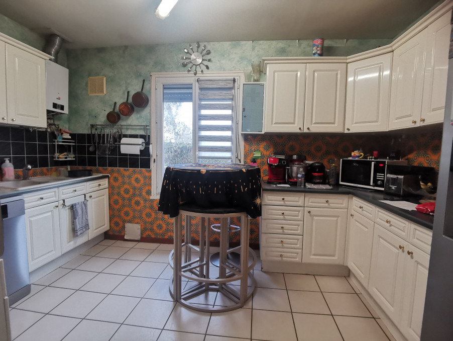 Il se compose, d’une entrée, d’un séjour de 28 m², d’une cuisine aménagée et équipée (four, plaques de cuisson, hotte), d’un couloir desservant trois chambres, un WC indépendant et une salle de bains
