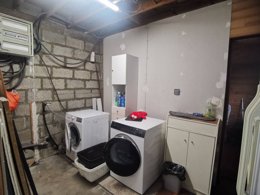 Une seconde partie, disposant d’un accès indépendant, comprend une buanderie, une chambre ainsi qu’une mezzanine, offrant la possibilité d’aménager un studio