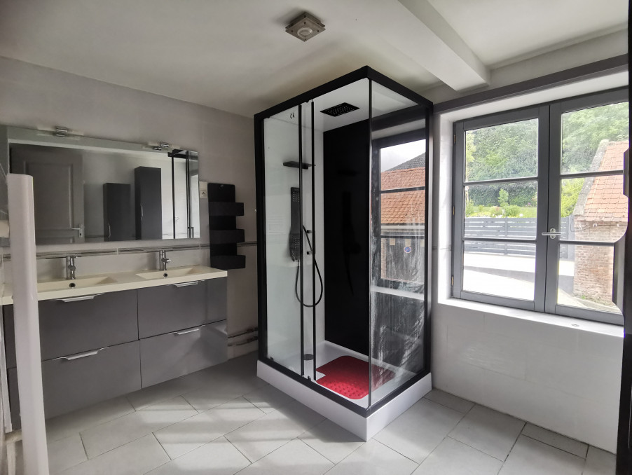 Située dans le bourg de Saint-Riquier, avec tous les commerces de proximité, cette maison de 132 m² habitables, écologique et économique en classe énergie C, se compose :